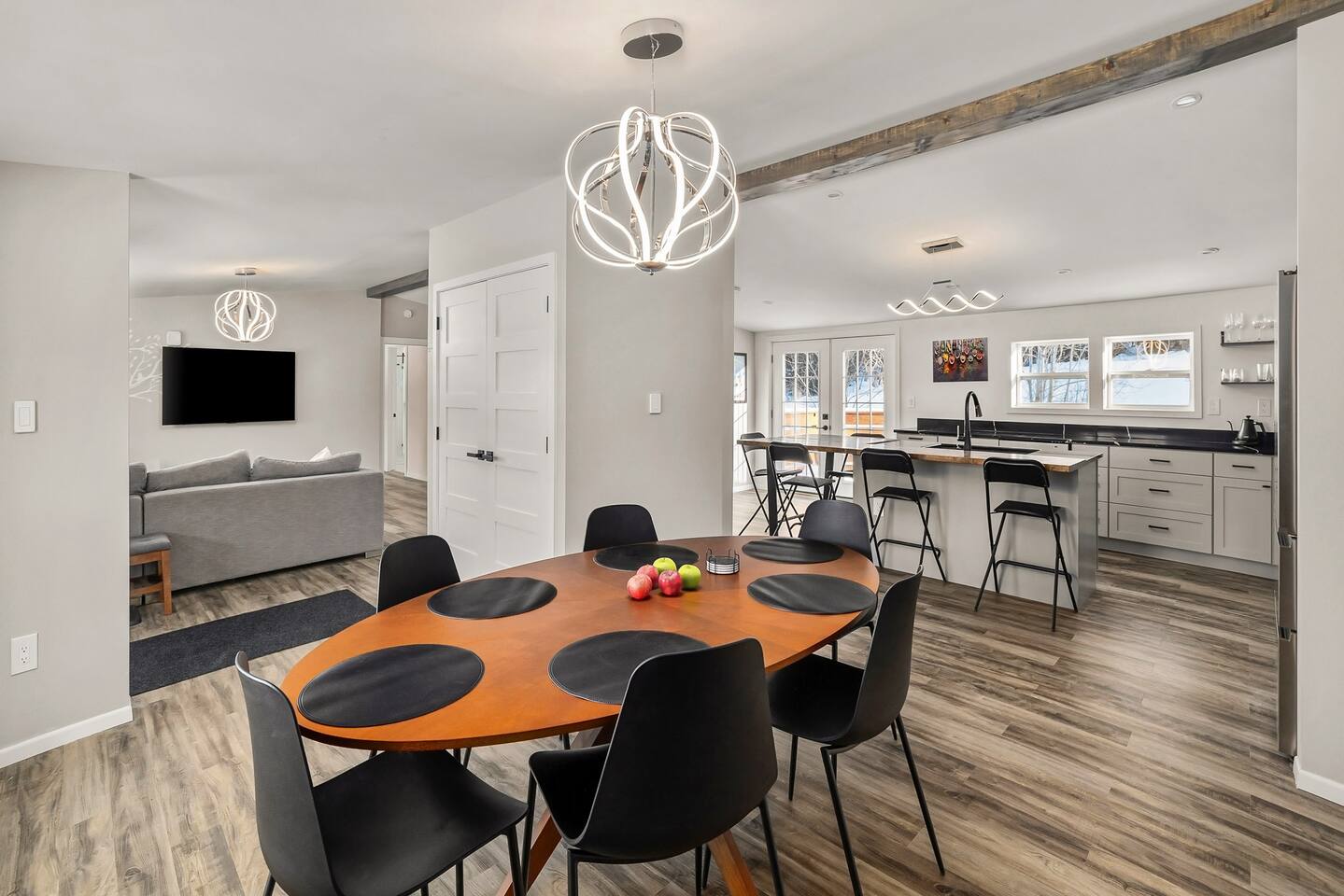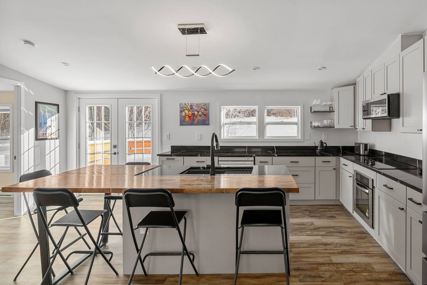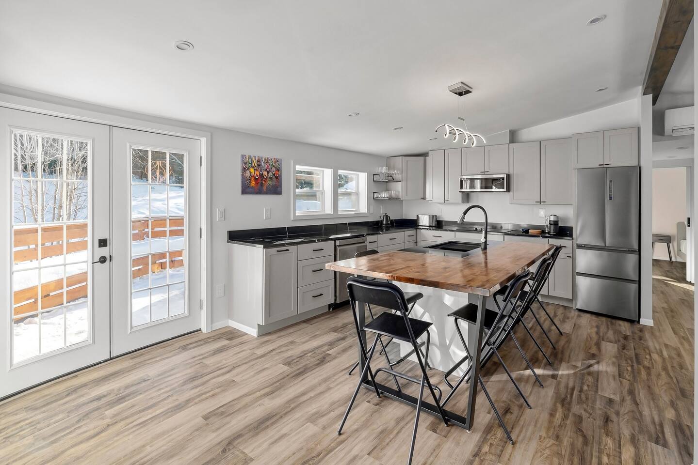 We’ve taken care of every detail so you can focus on enjoying your stay. Come and experience the ultimate blend of comfort, convenience, and serenity! LIVING ROOM: • Comfortable Sofa that unfolds into a full size bed with a memory foam mattress • Natural light • Smart 4K TV with a Dolby Atmos sound system and a Free Netflix account for you to enjoy KITCHEN: • Electric stove top and a range • Dishwasher, microwave and a toaster • Fully Equipped Kitchen • Coffee Makers (Nespresso, French Press, Chemex) • Large island with Seating for 5 comfortable (feel free to pull up our provided high chair when needed) • Multi stage filtered water so you can drink our tap water without any worries DINING ROOM: • Large dining room table with comfortable seating for 6 • Lots of natural light PRIMARY BEDROOM AND PRIVATE BATHROOM: • Queen Bed with a modern Helix mattress • Modern closet system that enhances organization, should you need to use it • Work desk or a make up area with extra lightning and a mirror • Private large full bathroom with a walk in glass rain shower • Heated floors inside the bathroom, you can adjust the temperature as you'd like • Mirror with advanced functionality, such as defog and lots of different shades of lighting SECOND LARGE BEDROOM: • Queen Bed with a modern Helix mattress • Comfortable window nook to relax in or to read your favorite book • Smart 4K TV and a Free Netflix account for you to enjoy • Modern closet system that enhances organization, should you need to use it • Work desk with auto raise and lower functionality, a comfortable computer desk chair, a monitor and a ring light for any remote work SECONDARY BATHROOM: • A full bathroom with rain shower/tub • Heated floors inside the bathroom, you can adjust the temperature as you'd like • Mirror with advanced functionality, such as defog and lots of different shades of lighting THIRD BEDROOM: • Trundle Bed with 2 twin size memory foam mattresses (one pulls out below top mattress) • Work desk with extra lightning OUTDOOR SPACE: • Rear deck has propane grill • Table to comfortably sit 6 people with plenty of extra built-in seating along the deck perimeter ADDITIONAL DETAILS: • GE smart Washer and Dryer with detergent provided, should you need to use them • Level 2 EV Charger (9.6KW) with J1772 plug - please message us if you'd like to use this as it's disabled by default • All rooms have electric heating via a combination of fully automated Mini Split system and baseboard heaters ATTENTION TO DETAIL ✔ Cleanliness is a top priority for us and we pride ourselves on welcoming you into a sparkling clean home. ✔ Our home has a washer and dryer along with ironing board and iron for your use. No detergent or dryer sheets included. ✔We keep first aid kit in both bathroom vanities. ✔ We provide fresh premium linens for each guest. ✔ We provide basic paper goods and consumables - paper towels, tissues, toilet paper, dishwasher tablets, dish soap, sponges. ✔ Coffee & tea are included.