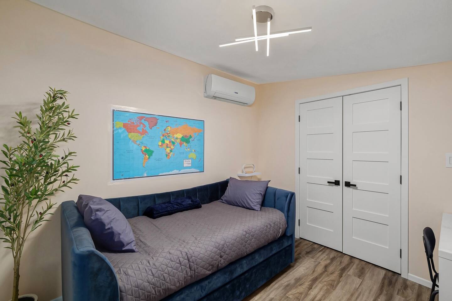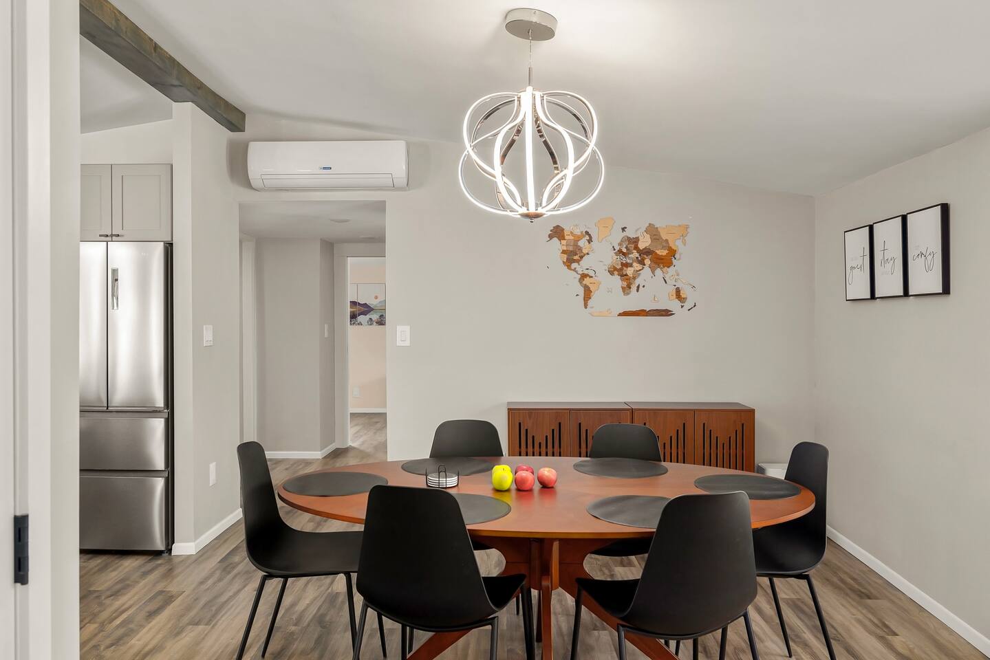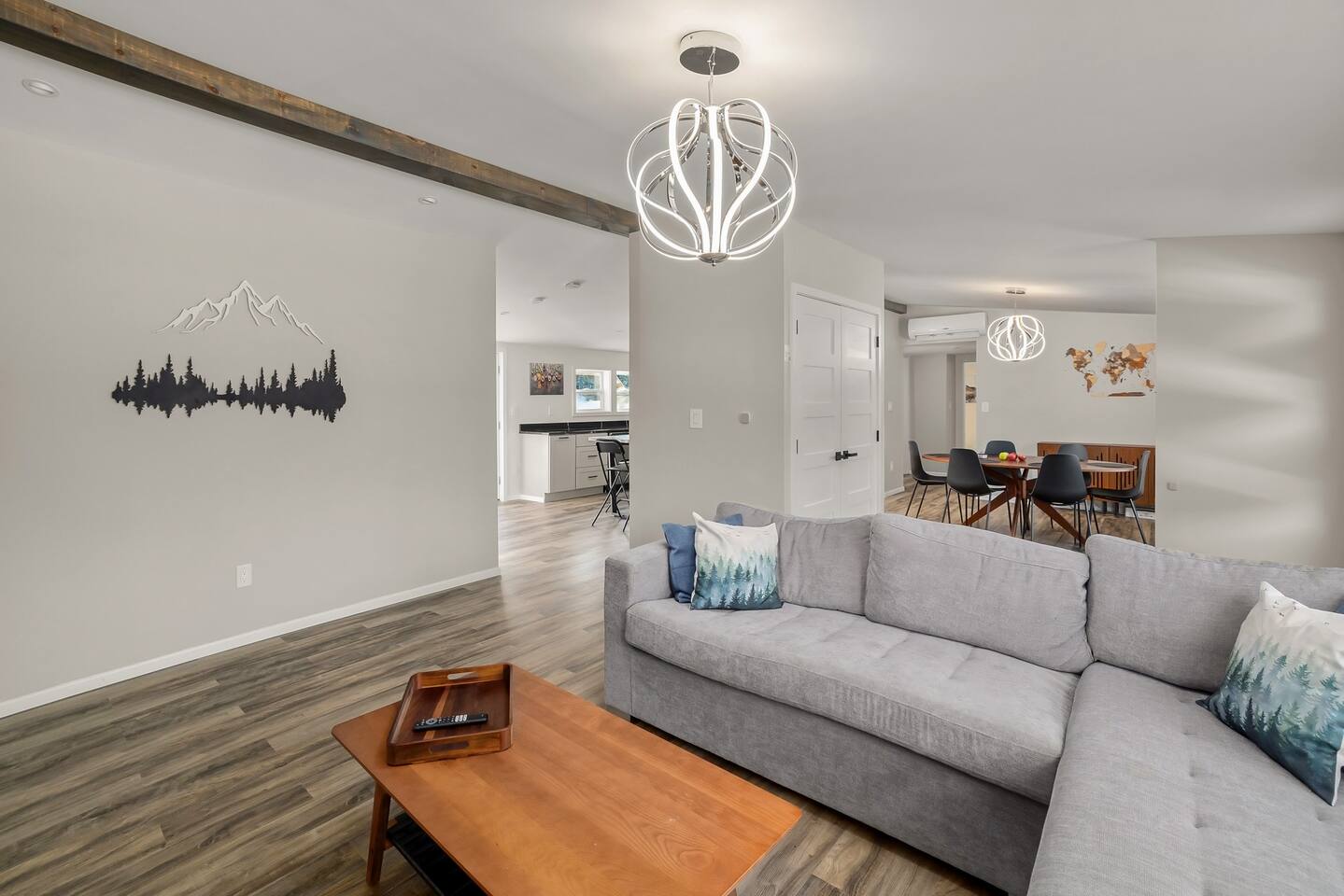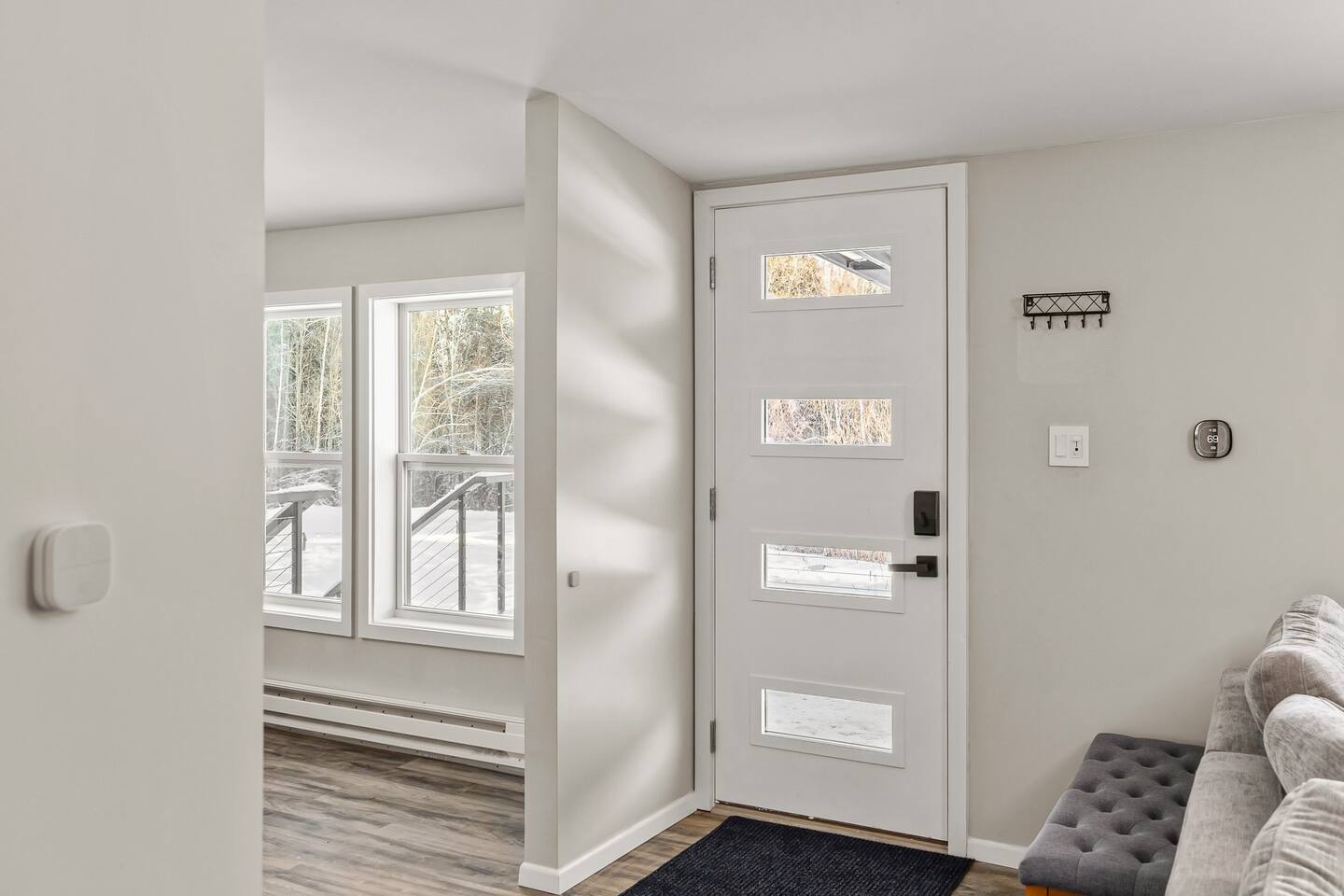We’ve taken care of every detail so you can focus on enjoying your stay. Come and experience the ultimate blend of comfort, convenience, and serenity! LIVING ROOM: • Comfortable Sofa that unfolds into a full size bed with a memory foam mattress • Natural light • Smart 4K TV with a Dolby Atmos sound system and a Free Netflix account for you to enjoy KITCHEN: • Electric stove top and a range • Dishwasher, microwave and a toaster • Fully Equipped Kitchen • Coffee Makers (Nespresso, French Press, Chemex) • Large island with Seating for 5 comfortable (feel free to pull up our provided high chair when needed) • Multi stage filtered water so you can drink our tap water without any worries DINING ROOM: • Large dining room table with comfortable seating for 6 • Lots of natural light PRIMARY BEDROOM AND PRIVATE BATHROOM: • Queen Bed with a modern Helix mattress • Modern closet system that enhances organization, should you need to use it • Work desk or a make up area with extra lightning and a mirror • Private large full bathroom with a walk in glass rain shower • Heated floors inside the bathroom, you can adjust the temperature as you'd like • Mirror with advanced functionality, such as defog and lots of different shades of lighting SECOND LARGE BEDROOM: • Queen Bed with a modern Helix mattress • Comfortable window nook to relax in or to read your favorite book • Smart 4K TV and a Free Netflix account for you to enjoy • Modern closet system that enhances organization, should you need to use it • Work desk with auto raise and lower functionality, a comfortable computer desk chair, a monitor and a ring light for any remote work SECONDARY BATHROOM: • A full bathroom with rain shower/tub • Heated floors inside the bathroom, you can adjust the temperature as you'd like • Mirror with advanced functionality, such as defog and lots of different shades of lighting THIRD BEDROOM: • Trundle Bed with 2 twin size memory foam mattresses (one pulls out below top mattress) • Work desk with extra lightning OUTDOOR SPACE: • Rear deck has propane grill • Table to comfortably sit 6 people with plenty of extra built-in seating along the deck perimeter ADDITIONAL DETAILS: • GE smart Washer and Dryer with detergent provided, should you need to use them • Level 2 EV Charger (9.6KW) with J1772 plug - please message us if you'd like to use this as it's disabled by default • All rooms have electric heating via a combination of fully automated Mini Split system and baseboard heaters ATTENTION TO DETAIL ✔ Cleanliness is a top priority for us and we pride ourselves on welcoming you into a sparkling clean home. ✔ Our home has a washer and dryer along with ironing board and iron for your use. No detergent or dryer sheets included. ✔We keep first aid kit in both bathroom vanities. ✔ We provide fresh premium linens for each guest. ✔ We provide basic paper goods and consumables - paper towels, tissues, toilet paper, dishwasher tablets, dish soap, sponges. ✔ Coffee & tea are included.